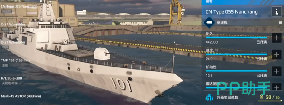 作为平民首选的多面手,乌沙科夫以“双导弹 + 双主炮 + 双火箭炮 + 鱼雷 + 六防空 + 一直升机”的全能配置赢得了众多玩家的青睐。火力方面不仅覆盖空中、海面、水下三维打击,还能通过火箭弹补足对舰伤害,在各类战场中都游刃有余,是典型的“全面覆盖型”强舰。她是高机动性驱逐舰代表,搭配X-51与东风系列导弹后远程打击能力极强,火箭炮配置也确保了近战威慑力。虽鱼雷配置略少,水下作战偏弱,但凭借出色的规避与跑图能力,在多种战术下都有出色发挥。