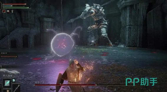 一旦在触发战斗之后,玩家还可以通过召唤野狼的灵魂,具有效分散守卫的注意力。尽可能选择从背后袭击,例如可以选择法师职业一般都会通过远程法术攻击,然后去削弱生命值,同时还需要注意躲避攻击。如果距离比较近,那么它主要是选择跺脚攻击,相对而言是比较容易躲避的,玩家就需要及时的躲避伤害。