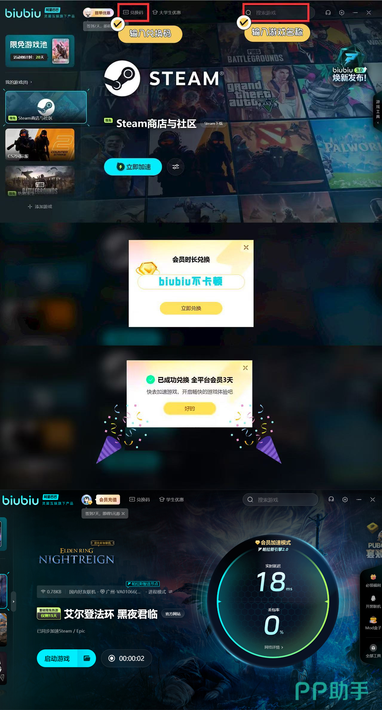 其实不管大家的职业选得多好,要是一卡的话一切都白搭,同样会沦为怪物的口粮。所以建议用上biubiu,加速过后才能让大家流畅战斗,防止卡住,并且联机组队不掉线。目前5月30日-6月13日期间该游戏加速限免,在其他时间段想体验的话。只要大家是刚注册的新用户,可马上获得24小时的免费加速;另外新老用户输入兑换码【biubiu不卡顿】,就能额外获得三天免费加速。