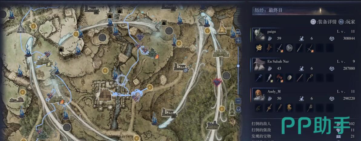 每局现实时长约半小时左右的三天周期,首日白天务必在4分半内完成基础探索,优先夺取两个教堂的"圣杯瓶"增加回血次数。矿洞内固定刷新紫色锻造石(武器升阶核心材料),进入前必须使用"哨兵火把"探测隐形伏兵。开局清剿两个营地后需直插中心城堡,击杀下水道固定位置的小BOSS可掉落6500卢恩,立即在城堡商人处兑换蓝色锻造石。切记武器升紫优先级远高于防具,紫色品质武器对首夜BOSS的杀伤力可提升40%。