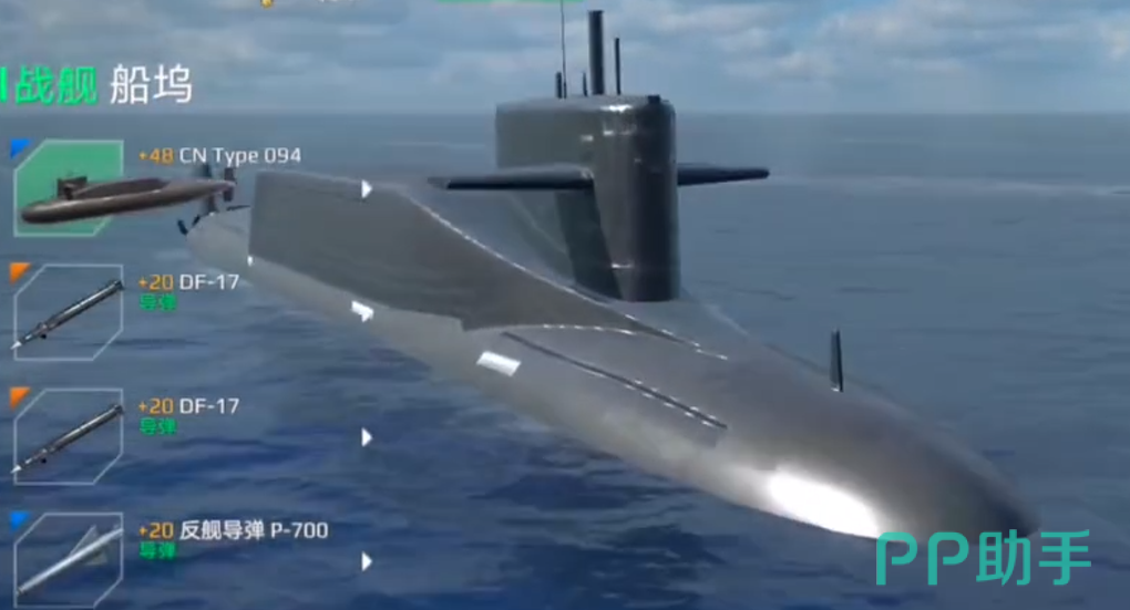 096型:作为战略类型的潜艇,它下潜的深度能够达到600米,隐蔽性能也特别的强。在游戏中并没有提出明显的不足之处,它能够有效地实施远程核威慑。在潜伏的时候,敌人根本就不会察觉。