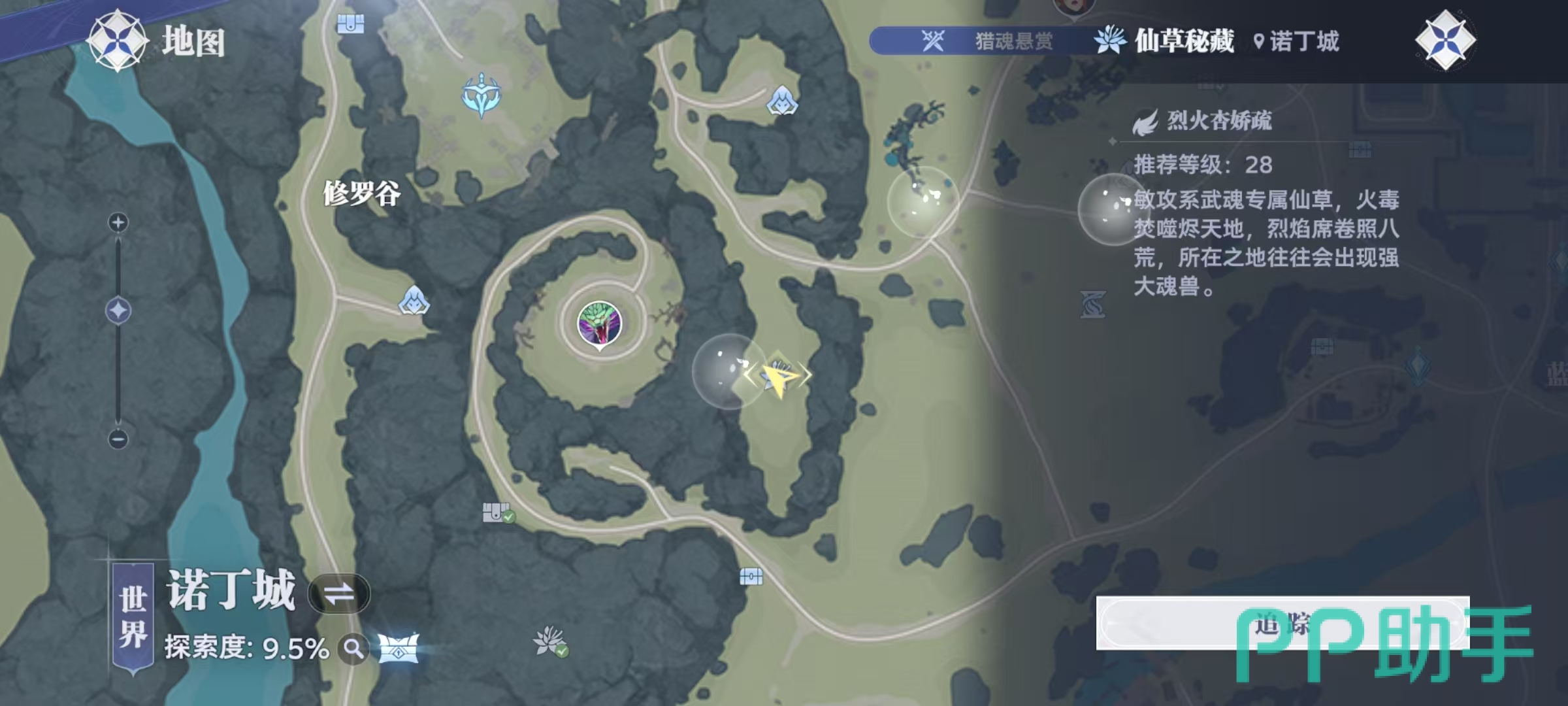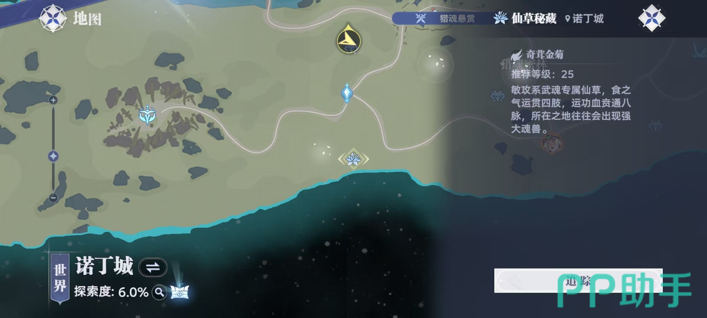 敏攻系武魂专属的奇茸金菊藏身于猎魂密林附近。推荐直接传送到密林西部的传送点,随后往下走一段距离,就能发现这株珍贵的仙草。