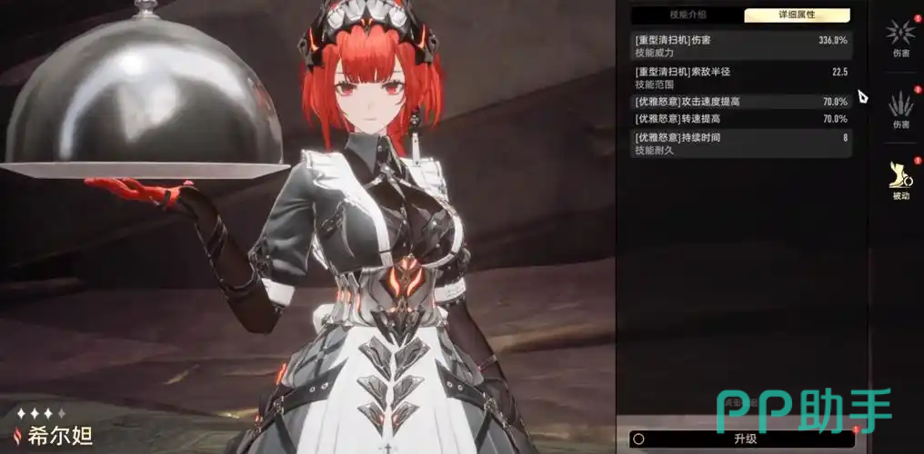 希尔坦这个角色是一个火属性的输出角色,别看希尔坦手中的武器清扫机看起来非常的普通,可是当她进入到战斗状态以后,她手中的清扫机就会快速的旋转对敌人进行火属性范围扫射,而且在扫射的时候还能附加上额外的效果增加伤害,锁着扫射的继续附加的效果还能近些叠加。
