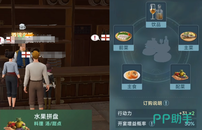 每次参加宴请,都可以恢复150点的行动力,并且各个地区的套餐配方都是不一样的,如果玩家能正确搭配这些套餐的菜品,就可以获得大量行动力的提升,前期会进入很多餐厅用餐,可以把这些菜品的搭配记录下来,这样在后期开宴的时候,就可以直接组合菜品。