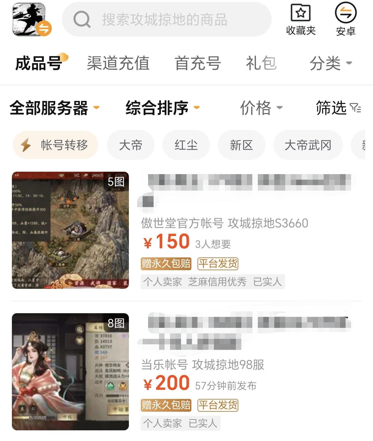 交易猫平台汇聚了丰富多样的攻城掠地账号,无论你是追求极致实力的老玩家,还是刚踏入游戏的新手,都能轻松挑选到心仪的账号。想迅速感受游戏顶峰魅力的玩家,成品号是理想选择,这些账号等级高、资源丰富,不仅助你轻松应对后期挑战,还能满足你养成升级或抽卡探险的多样需求。交易猫用丰富账号库和多元化选择,助你开启无忧畅玩的游戏旅程。