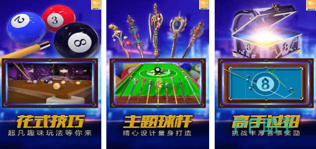 会采用高度仿真的台球物理系统,在碰撞之后就有一种真实的感觉,增强游戏的沉浸感。有40多种不一样的球杆可以让玩家选择,而且数量还会不断的增加,每一个都会有独特的外观以及属性加成。玩家可以选择个性化的角色去彰显尊贵的身份,其中也会包括多种比赛模式,例如在线联机,还有单人练习等等,每次过关之后都能收获丰厚的奖励。