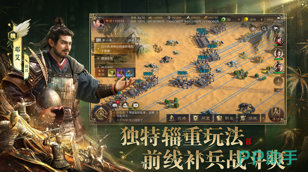 以三国为主题打造的SLG类游戏,想必是国人玩家都不陌生,这款三国谋定天下,以三国时期的真实战场为背景,创造六大真实职业,打造高真实度的沙盘策略玩法,以智慧定天下,真正做到了将干减负。独创的辎重玩法,让玩家可以实现前线快速补兵,战斗到爽。六大基本职业,种田高战,通通都易上手。