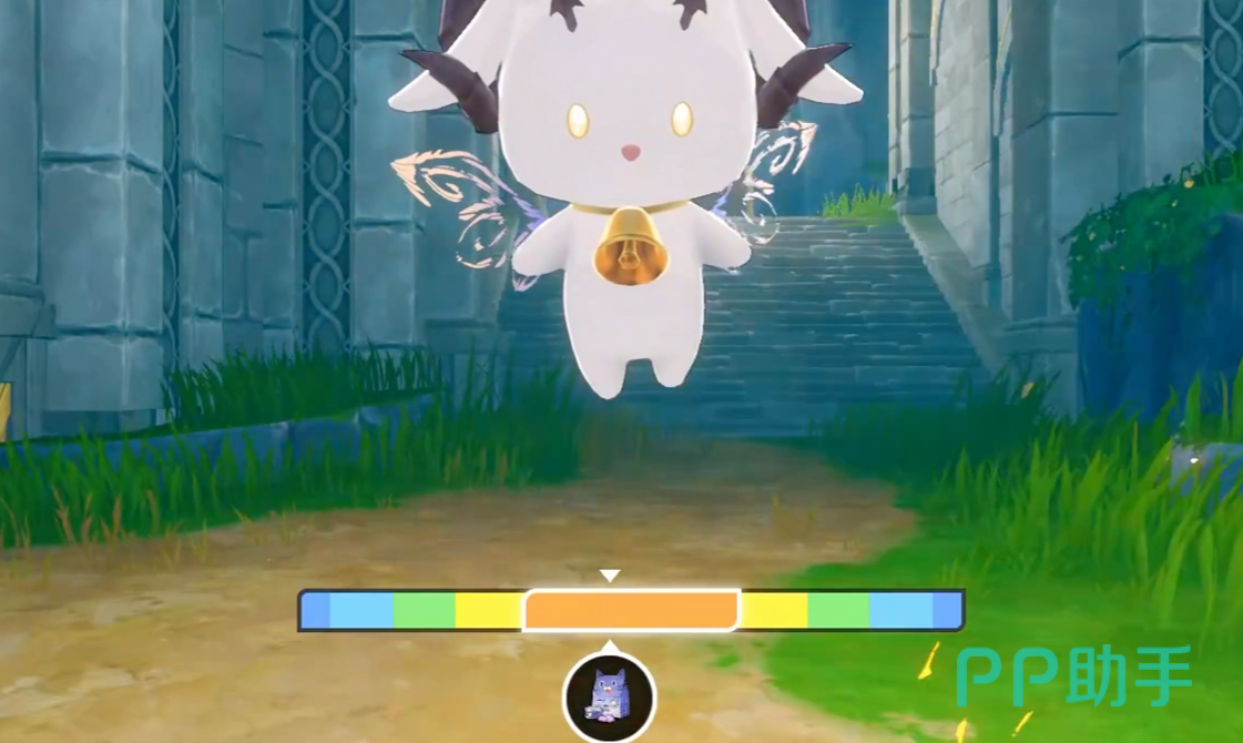 不断喂养可以看到它下方的光标在慢慢移动,等光标移动到中间的橙色区域就可以捕捉了,给予越高级的罐罐,捕捉的成功率会越高,不过高级的只能在商店购买,普通的罐罐不限量使用,但是成功率会比较低。