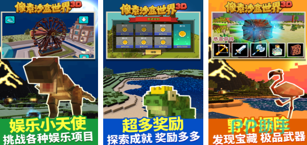 像素沙盒世界中发生许多有趣的事情,玩家一起来看看吧。娱乐项目比较丰富,不仅有摩天轮,玩家还会参加到碰碰车等多个娱乐项目当中。里外探险是重要的一个板块。玩家在这个过程中可以发现地图上的各种宝藏武器,比如等级较高的斧头和弓箭。探索成就里,玩家可以赢得更多的金币,并且进行使用。