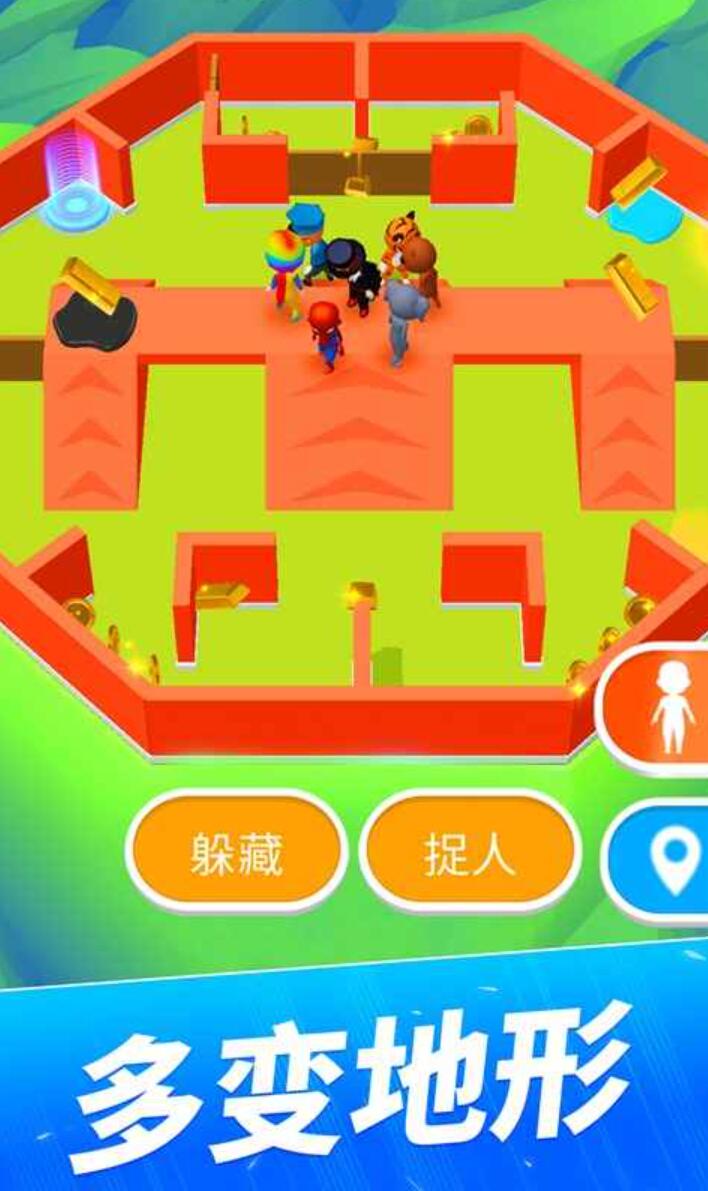 主打2D横版躲藏,角色能变成书本塞进书架,或者伪装成玩偶趴在娃娃堆里。每局分准备阶段和抓捕阶段,躲藏者最后30秒会获得隐身技能,但移动时会留下半透明残影。有个模式叫谁是内鬼,随机选一人当叛徒暗中给抓捕者报点,朋友开黑玩互相猜疑特别搞笑。