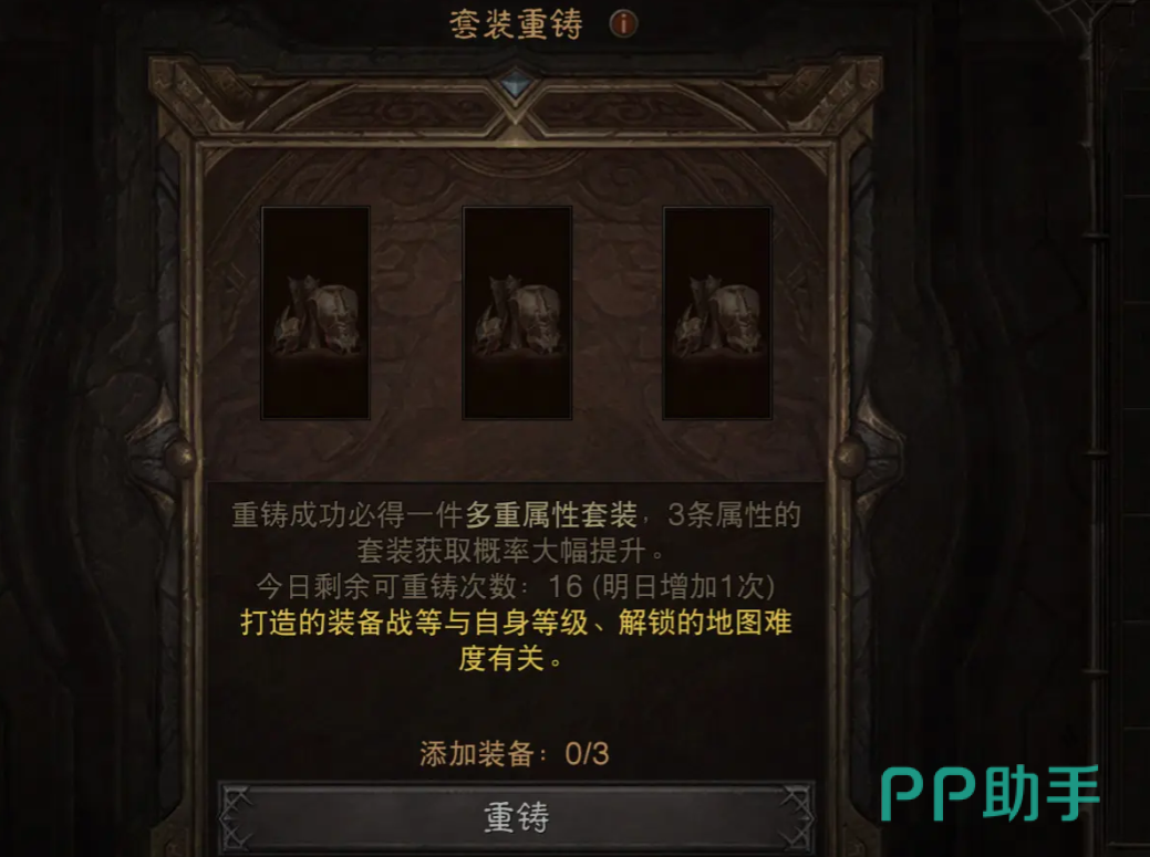 庆典期间还会限时开启“五星宝石体验”、“套装重铸”等活动,大家可以趁机会去威斯特玛铁匠旁进行套装重铸,使用3件同名同部位的套装,有很高几率获得一件高品质的。