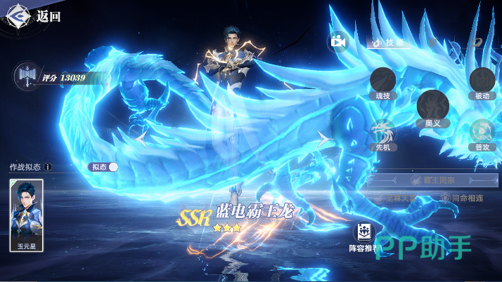 蓝电霸王龙可以给到攻击、防御、生命力、精神力方面的加成,精神力可以理解为法攻。然后是看技能,普攻5段,倍率不错,攻击距离适中。先机技,则是在目标位置召唤霸王龙,攻击并牵引范围内的目标然后降下落雷。