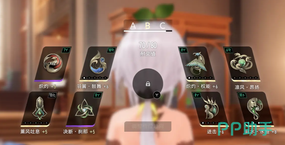 她的“腐草为萤”会进入到破茧中得到飞行能力,期间持续损耗神智,她的被动一能在造成的伤害暴击时,随机获得攻击提升、技能威力提升,和背水提高中的一个增益,并根据身上增益的数量提高伤害,她的被动二会在生命值大于10%时,让破茧流失生命值,不消耗神智,流失的生命值会按照比例转化成护盾,自身生命越低的情况下,遭受的伤害越低。