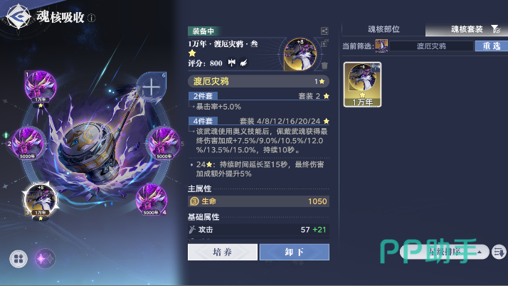 这里着重介绍下魂环和技能,魂环有点类似套装,有6个魂核部位,可以装配相同的,也可以装配不同的凑混合套装效果,理想情况下自然是1万年橙色魂环,并且对应武魂需要的套装属性,比如奥义暴击类的套装就适合高爆发的武魂。