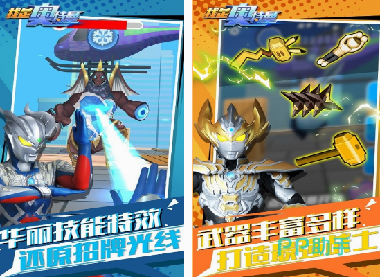 此动作游戏也是与英雄奥特曼角色所推出的,将化身为游戏中的奥特曼,通过完成的任务,来与怪物进行对抗。其中还有超多的环境,无论是浩瀚的星空以及陆地海洋等,都会遇到很多的怪兽军团,需要与这些怪兽军团进行抵抗,发挥自己的战斗实力,才能获得荣耀游戏。涵盖超多的武器,通过打造最强的战士以后,无论面对的是怎样的怪兽,都能将其打败。