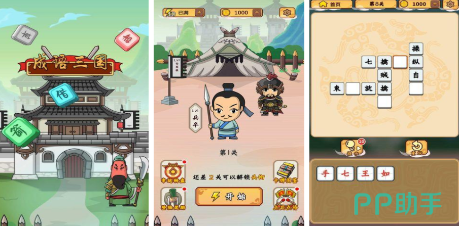 成语三国是一个非常休闲的益智游戏,游戏里玩家刚开始只是一个小兵,需要通过完成各种成语填空,提升自己的官职,每一个关卡中都会有数量不等同的成语,玩家需要把正确的汉字填写到空位中,顺利完成考研之后还能获得大量的金币,可以用这些金币购买装备和服装,让角色有更强的战斗能力。