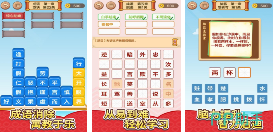 成语接龙大全四字成语游戏,已经跟大家都在上面分享出来了,除了成语游戏之外,还介绍了一些文字游戏,在设定上比较相似,玩法也非常考验玩家的能力,大家可以选择自己感兴趣的尝试,每一个都有极强的游戏趣味性。