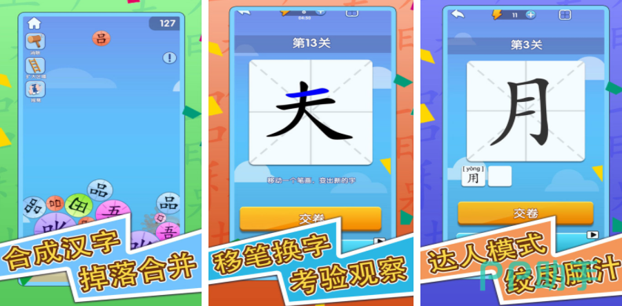 想放松自己的玩家,可以尝试一下神奇的汉字,在游戏里会有很多不同的玩法,可以通过加一笔的方式,组合成全新的汉字,也可以通过合成的方式,把偏旁部首组合成一个文字,还有趣味的消除和拼字玩法,每一个都能让玩家感受到汉字带来的魅力,也能在这过程中,体验到趣味的合成和消除。