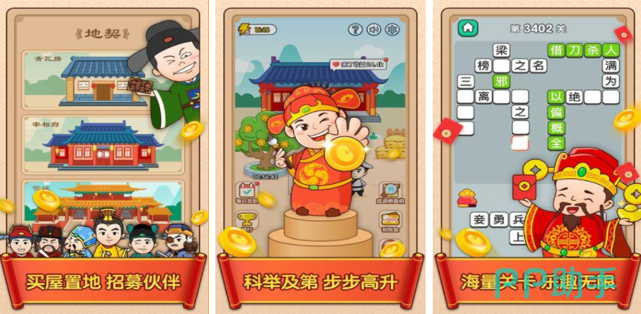 提升自己成语能力的玩家,可以尝试一下成语升官记,里面会模拟出一个古代世界,玩家将会从一个普通书生开始成语挑战,就不断在空位上填写正确的汉字,这样才能让成语补充完整,另外这些成语之间都会共用一个汉字,玩家需要仔细分辨哪一个才是对应的汉字,只有填写正确,才能完成关卡的挑战,开启新的成语闯关。