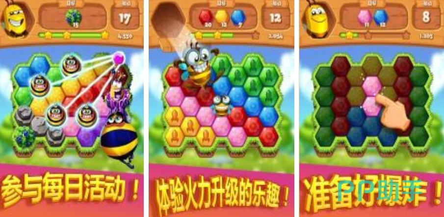这款游戏的关卡里会呈现诸多五颜六色的小蜜蜂,而你要做的就是将同一色系的蜜蜂进行连线,从而达到消除目的,这个过程能够让大家的思维能力得到飞跃式提升。游戏关卡数量多到你应接不暇,你才能挑战自己的消除极限。在通关过程里,你能得到一些有奇效的道具,一旦在无法破解的关卡里使用,就能让你飞速通关,你也不至于因为关卡太难而弃游。