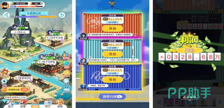在集装箱盲盒模拟游戏中,玩家扮演集装箱盲盒购买者,面对一排排集装箱,凭借运气与策略选择开启,集装箱外观设计逼真,从锈迹斑斑的旧集装箱到崭新的标准箱,每个集装箱都仿佛蕴含着未知惊喜,开启集装箱后,可以发现各种虚拟物品,包括珍贵古董、稀有收藏品、热门电子产品模型、复古交通工具模型等。
