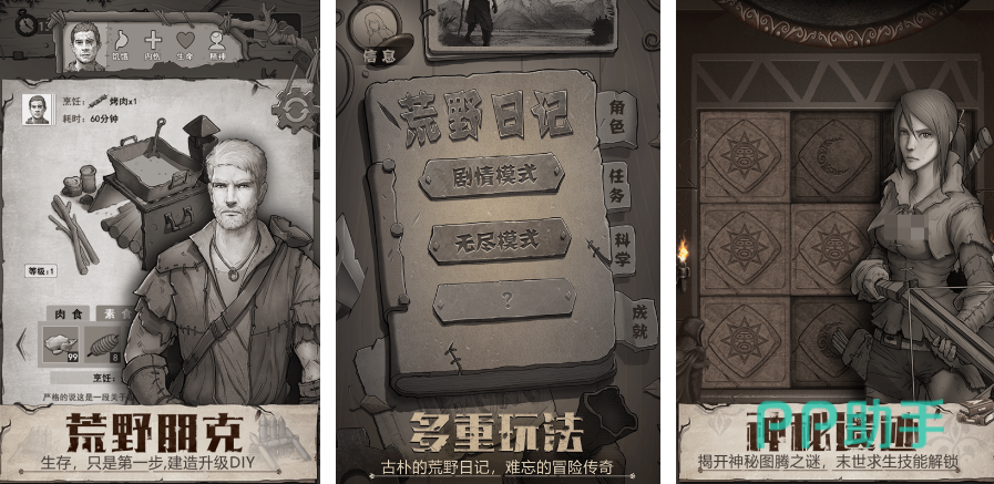 采用了文字冒险、角色扮演相结合的表现形式,以沉浸式的剧情叙述为核心体验。运用独特的手绘风格,搭配极具张力的暗色调视觉呈现,营造出别具一格的末日氛围。玩家将扮演一名荒野求生者,在危机四伏的自然环境中展开冒险,从收集生存物资到打造必备器具,从搭建避难所到提升生存技能,每个决定都关乎生死存亡。