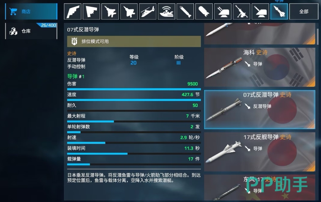 想要提升自己的战斗力,除了选择强大的舰艇以外,搭配上合适的装备也是关键因素,大家在等级升到15级后就可以开始配置武器了,小编推荐各位去购买A-192阿尔马特(主炮)、AK-130(主炮)、07式反潜导弹等,都是射程较远,同时伤害比较高的,其实210型炮、奥托76型炮也挺不错的。