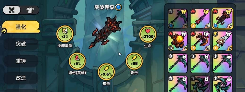 升华完成后,武器必得1-2个新的词条,比如说加15%暴击率,技能冷却减少20%之类的;还有随机浮动的一些词条;如果升华不满意,也颗进行重置,需要消耗“重置石”,能清空所有升华的属性,并重新进行升华。