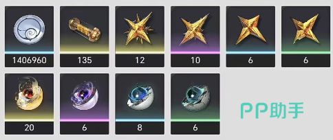 关于材料首先要带大家看的是角色的升级突破材料,该角色想要突破到满级的话,需要准备102万贝比、122个金色共鸣促剂、4个金色潮蚀帆核、12个紫色潮蚀帆核、12个蓝色潮蚀帆核、4个绿色潮蚀帆核和46个不朽荣耀、60个血叶荚迷。