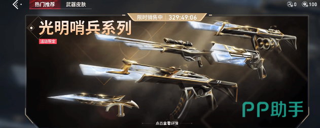 这款游戏是可以氪金的,例如要想获得自己所喜欢的皮肤还有武器,那么就可以通过氪金的方式。玩家在点开商城之后可以看到现在就有4个不一样的套装,第1个就是光明哨兵系列。