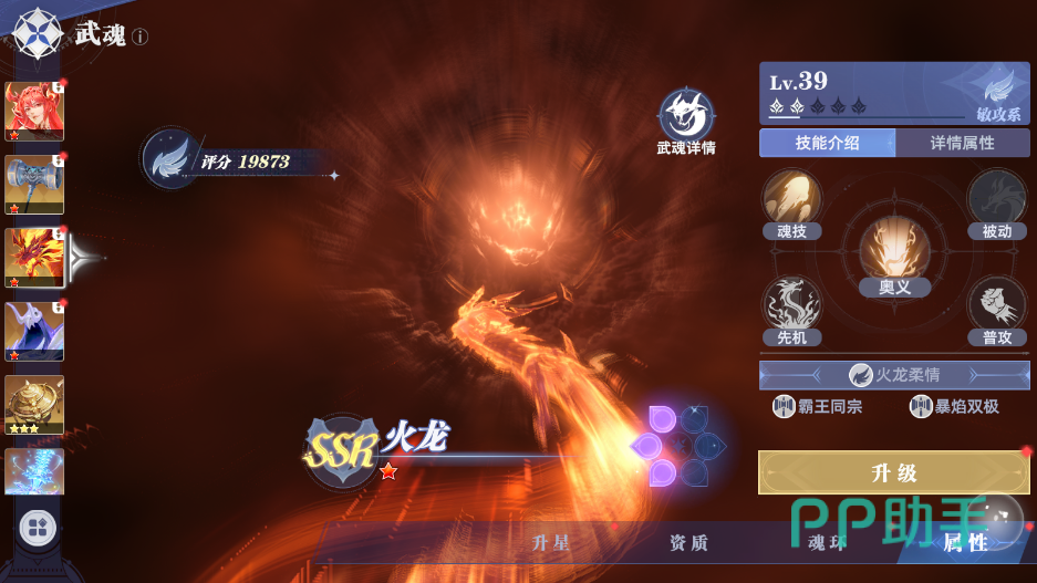 猎魂世界围绕的武魂的养成与搭配展开,获取了武魂,也就等同于获得了对应角色的拟态,可以在角色界面上阵不同系的武魂,这样战斗时候切换武魂就可以变换不同的战斗方式,使用不同的魂技和奥义技。