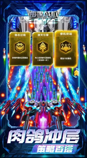 游戏中打造了很多科技感十足的战机,每种战机都有独特的战斗设定,还有炫酷的弹幕特效,大家可以根据不同的玩法,或者是不同的战斗场景,对战机,装甲,副武器以及僚机进行搭配,有些套装的火力覆盖范围更大;