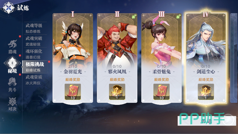 在猎魂世界中玩家可以培养自己喜欢的武魂,根据武魂技能机制与定位来搭配合适的阵容,然后再依靠着循序渐进的培养与精湛的操作技巧来狩猎魂兽,完成巅峰试炼。