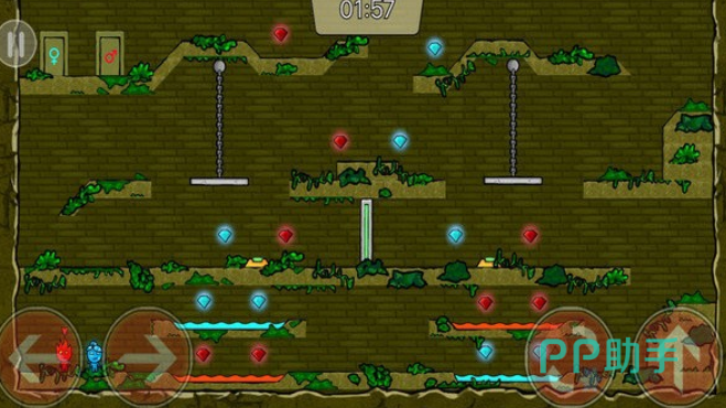冰火人密室逃亡游戏中,围绕冰火小人在密室场景中的冒险展开,玩家需同时操控冰人与火人,利用二者特性完成一系列闯关挑战,冰人不怕寒冷可在冰面行走,能触碰蓝色机关与道具,但无法接触火焰区域,火人不惧炎热能在岩浆附近活动,可触碰红色机关与道具,却不能踏上冰面,游戏关卡中布满各种机关陷阱,玩家要仔细观察关卡布局,合理规划冰火小人的行动路线,让二者相互配合。
