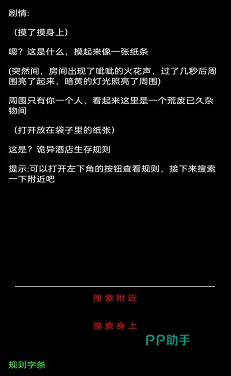 一款文字解谜冒险游戏,以恐怖怪谈作为核心主题。游戏的舞台搭建在一座略显破败的旅馆里,玩家要依据纸上所写的规则,去解开旅馆中形形色色的谜题。随着谜题一个个被攻克,旅馆背后隐藏的秘密与真相也会逐渐浮出水面。游戏采用了对话阅读模式,同时搭配上直观明了的提示系统,极大地提升了游戏的可玩性,让玩家能够更加沉浸其中。创新性地设计了独特的解谜机制,是对玩家逻辑思维的一次考验。