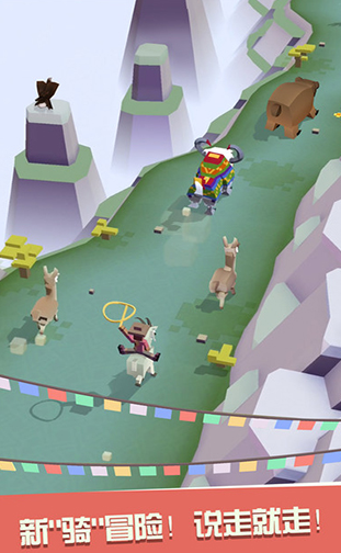 在这款游戏的奇妙世界里,玩家将化身一位勇敢的牛仔,踏上一场速度与智慧的冒险之旅。不同于传统跑酷游戏的单调,这里融合了3D像素画风与模拟经营玩法,让每一次奔跑都充满惊喜。玩家需在草原、丛林甚至神秘侏罗纪的地图上,驾驭各种动物疾驰,用精准的套索技巧驯服它们,为玩家的空中动物园增添新成员。跑酷时需眼疾手快躲避障碍,同时捕捉沿途的珍奇异兽。
