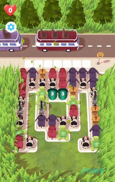 在这款游戏之中,玩家将化身智慧的指挥官,帮助一群充满灵性的小动物逃离束缚,让大家踏上一段关于自由追寻与勇气试炼的奇妙旅程。游戏以明快柔和的笔触勾勒出治愈感十足的视觉画卷,将动物栖息的每个场景精心雕琢成独具匠心的挑战舞台。在这里,玩家需要仔细观察每只动物的位置与特性,合理安排它们的上车顺序,让它们准确登上对应颜色的巴士。游戏中的动物形象生动有趣,它们独特的移动方式和滑稽的动作,为整个游戏增添了许多欢乐与亲和力。