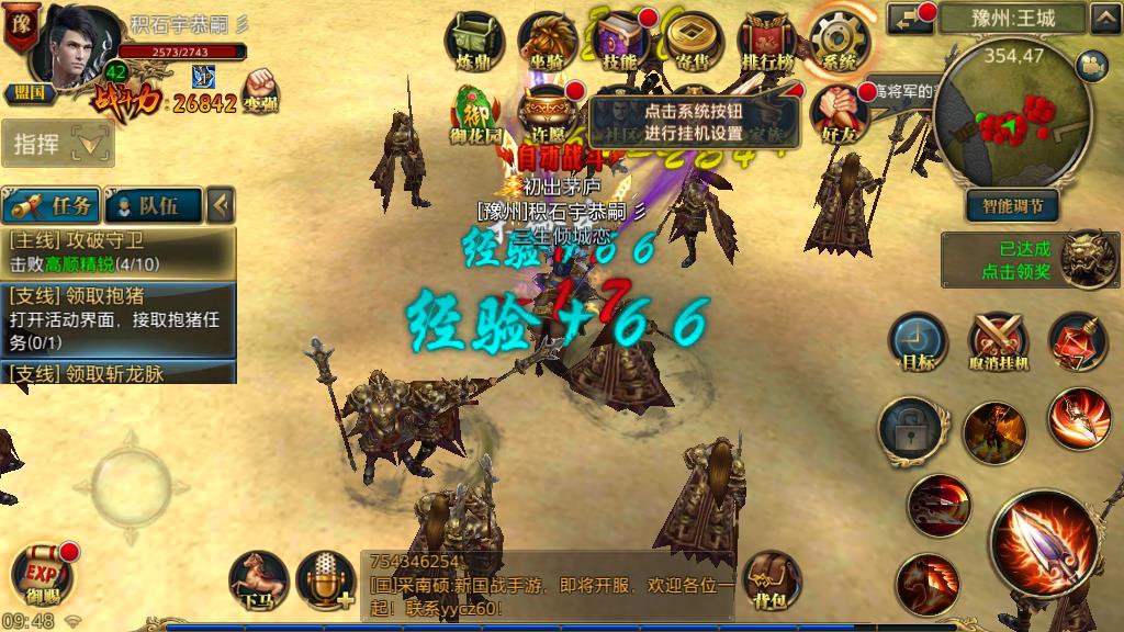 首先玩家等级要达到100级才可以参与这个活动,小编个人推荐玩家将自己的装备换成魔防装备,因为在国战中敌人的法术攻击是最多的,这一点大家要注意。在参与的时候如果玩家是弱势的国家成员,那么在活动中可以选择两种玩法。