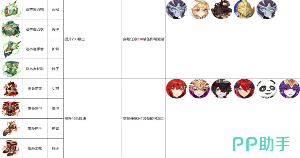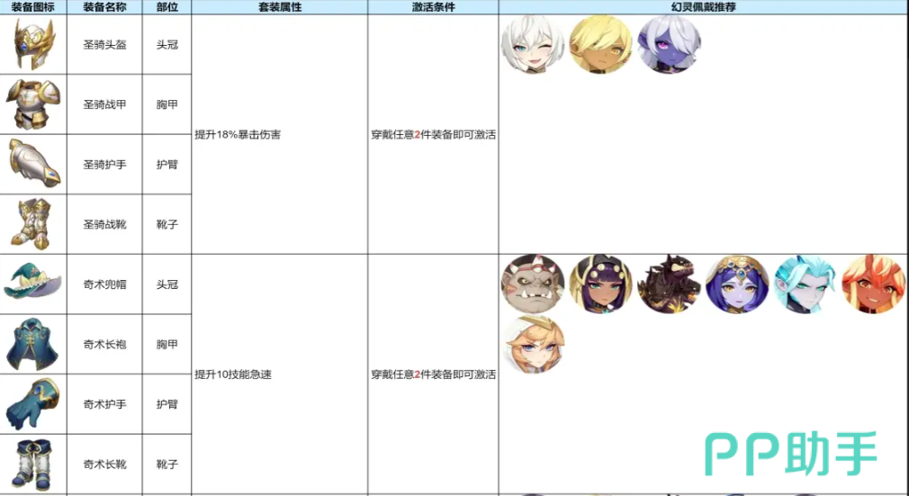 其余的一些套装装备,小编也在文章当中整理成了表格图片,玩家可以通过查询这些图片,直接了解套装属性、推荐穿戴的幻灵以及正确的激活条件。如果你还想对龙魂旅人的其他攻略进行查询了解,可继续关注豌豆荚哦。