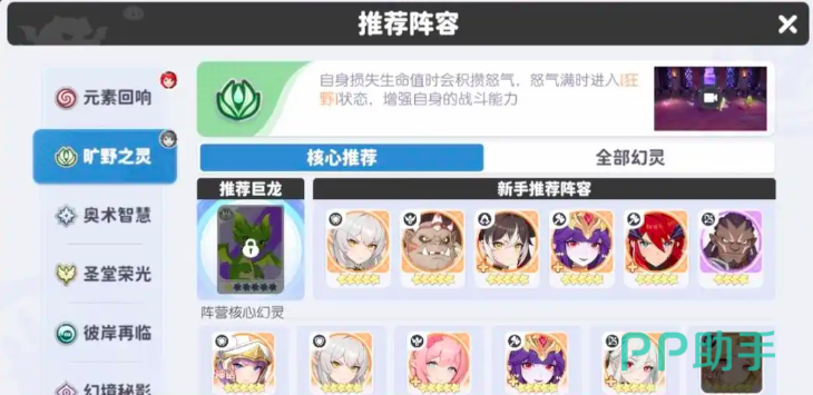 第一组为狂野战队,玩家可使用白虎、火主、奥伯隆妮、喀戎、双生鸦灵、妖精仙后和小翠龙进行配合,这几个角色一般升到四至五星就可以有非常不错的发挥表现。在团队当中,小翠龙是具有治疗效果的,并且可以对团队进行提升治疗效果,在队伍当中是重要的奶妈角色,因此可以放在后排,整个团队要对其进行一定的保护。