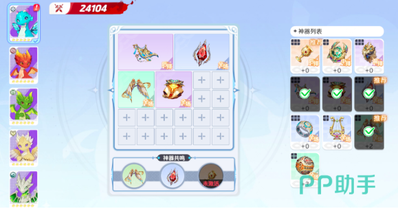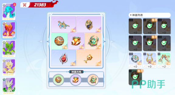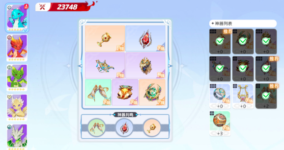 西西弗斯巨石和日神斗篷,都能够触发小火龙神器共鸣,玩家将第一排优先选择填满可提升属性增益值的神器。