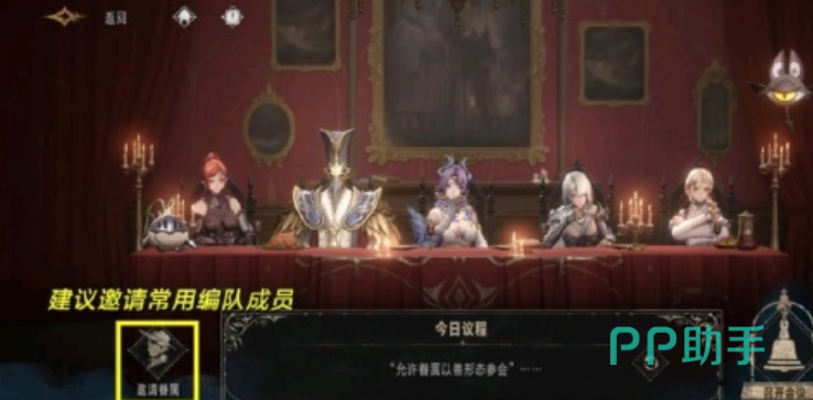 接着是议事阁,议事阁可以邀请不同角色参与议事,让他们发表观点,我们选择执行方案,这个每日都可进行一次,能让好感度提升,与我们观点一致的提升会更多,好感度能影响属性面板和战力,建议邀请日常编队中的五位,如果队伍更换,也要记得同步变更议事阁的。
