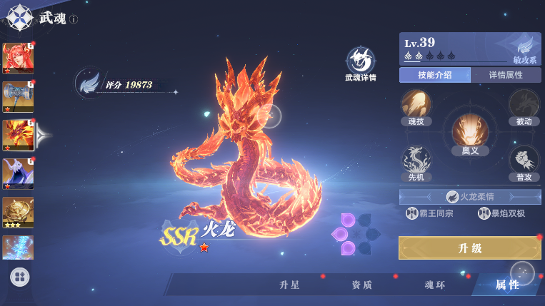 敏攻系,首推火龙,攻击模组好,范围大,不容易打空,而且是组灼烧队几乎必带的武魂,技能特点可以触发炎爆,立刻结算敌人剩余的灼烧效果,同时再附加一层灼烧。柔骨兔也不错,搭配昊天锤,对冲击效果的敌人可以追加攻击。