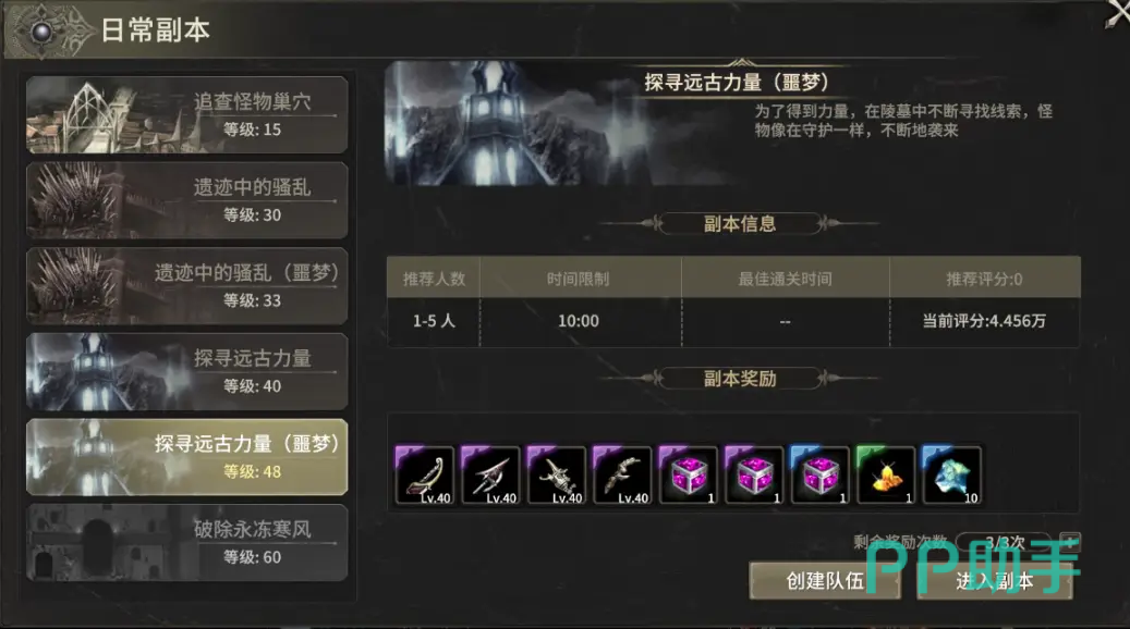 这个阶段有几个副本最好是可以将次数用完的,首先就是龙之巢穴,这个是很标准的经验副本,该副本一天可以进入5次,是快速升级的重要渠道,如果有经验药水的话最好一起使用,这样升级的速度会高于其他人,然后是深渊裂隙,这个是世界级别副本,新手玩家大致只需要参与就可以了,打不过也是没有关系的。