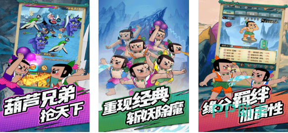 这款继承了葫芦娃动漫精髓的回合游戏很好玩,多元副本和放置操作设定都是亮点,葫芦娃的造型百变能带来不同视觉效果,怀旧向的美术表现和CG过场也为本作加分不少,剧情线跟葫芦兄弟的动画片保持一致,就连蛇精和蝎子精等经典反派也会出现,葫芦兄弟动漫粉丝不要错过这款回合制神作。