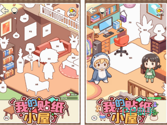 这款有着可爱人物玩法比较简单的贴纸游戏,不仅是完全免费,一点都不烧钱,也是孩子都能体验的。具有休闲又解压的游戏特色,会在每个场景当中,显示出可以放置家具的空间,通过每个空间中所显示的数字,将贴纸放到合理的位置上以后,就能使家具摆放到每一个小屋里面。完成了以后,也能使整个屋子变得特别时尚,有不同的风格。