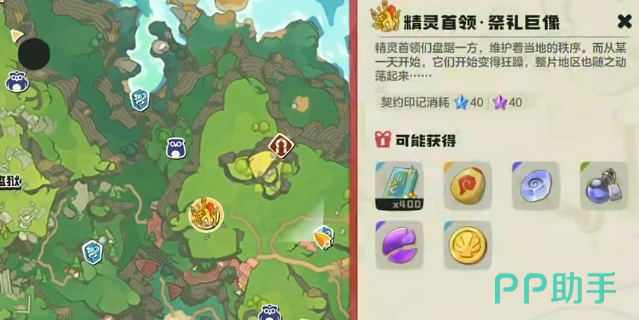 祭礼巨像在月兔酒馆的上方,它在一阶段会在地面上释放一整排的地刺,我们需要快速远离来躲避,除了地刺攻击外它还会召唤两处从天而降的光波,光波会形成持续性伤害,大家可以观察地面红色的预警范围并远离躲避,同样打破护盾后进入二阶段,巨像有着地面加幻系的双重属性,所以可以让草系的如格兰球上场,首领在前两个回合无法攻击,我们可以先使用丰饶加强自己,再释放草系技光能聚焦就能带走。