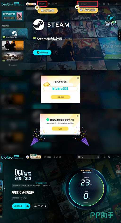 只是很多玩家在下载游戏时却发现经常性遇到延迟还有掉线的情况,这很有可能和网络的不稳定有关,导致下载时出现了这些问题。要想解决问题,只需要点击以上的链接,下载之后就能缓解。现在还可以领取免费加速时长,新用户最高可以免费96小时,有一个24小时的礼包。兑换码【biubiu001】还可以额外的免费3天,因此希望大家可千万别错过。