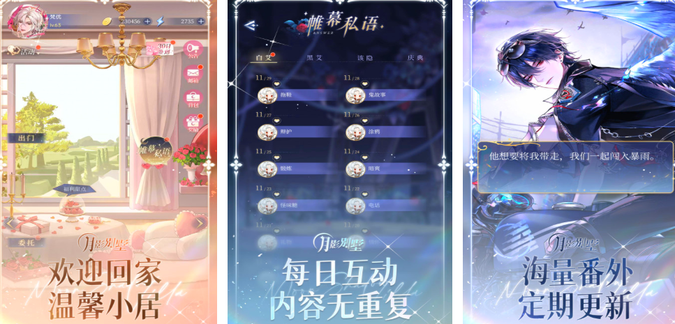 乙女风格的高互动性沉浸式恋爱手游,画质极为出色且多位风格鲜明的男主角,让玩家们拥有更多的选择与剧情体验。每位主角都有独特人设和剧情任务,同时还有实时且富有磁性的配音,台词文本细腻让玩家能真切感受到不同风格的男友互动。剧情上更是充满波折,玩家的选择极多同时也会解锁不同感情走向,活动剧情也是具有相当的感染力。