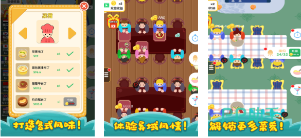 烹饪王国这款作品采用上帝视角让玩家看清厨房的设置,甚至能进入餐厅化身服务员照顾客人,多元化食谱帮助玩家解锁了更多的菜系,真实的烹饪经营体验也有着不错的代入感,各类美食的烹饪流程各有不同有助于提升厨艺,简单卡通风的背景呈现更带有不错的观赏性,你也尝试在专属的烹饪王国中经营吧。